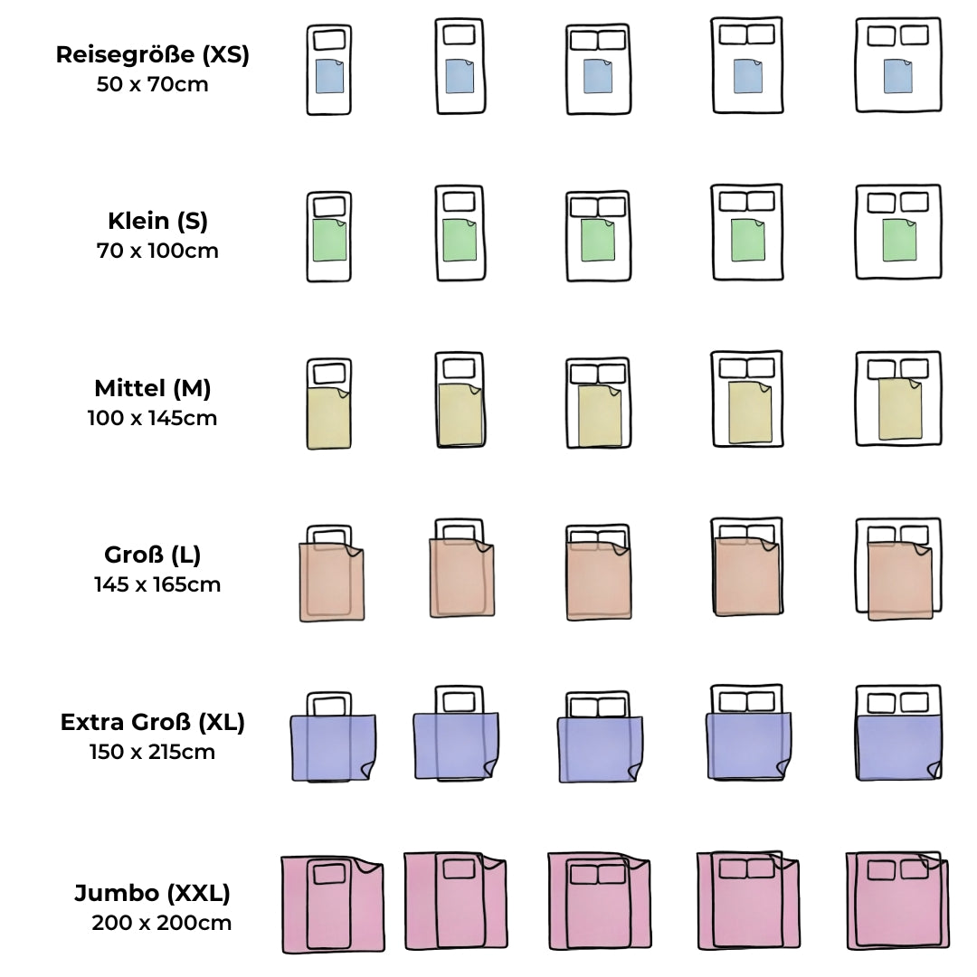 Die Standard Liebesdecke absorbiert die meiste Flüssigkeit, ist am flauschigsten und wärmsten. Allerdings dauert das Trocknen auch länger.